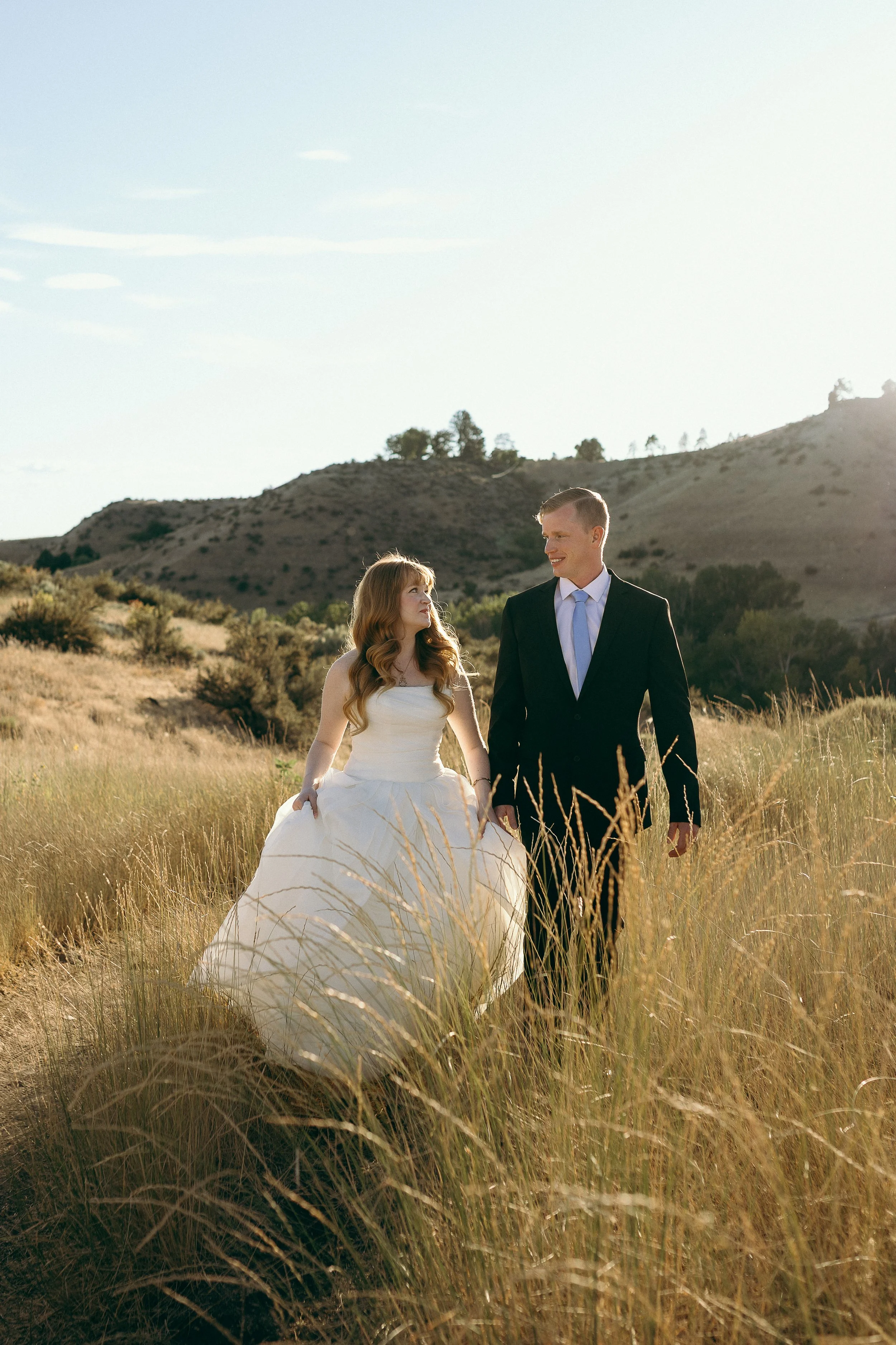 This bridal session with Bella and Nick at Boise’s Military Reserve unfolded in the kind of evening light that feels cinematic, soft, golden, and completely unhurried. The hills were quiet, the air was warm, and every frame carried a sense of calm connection.